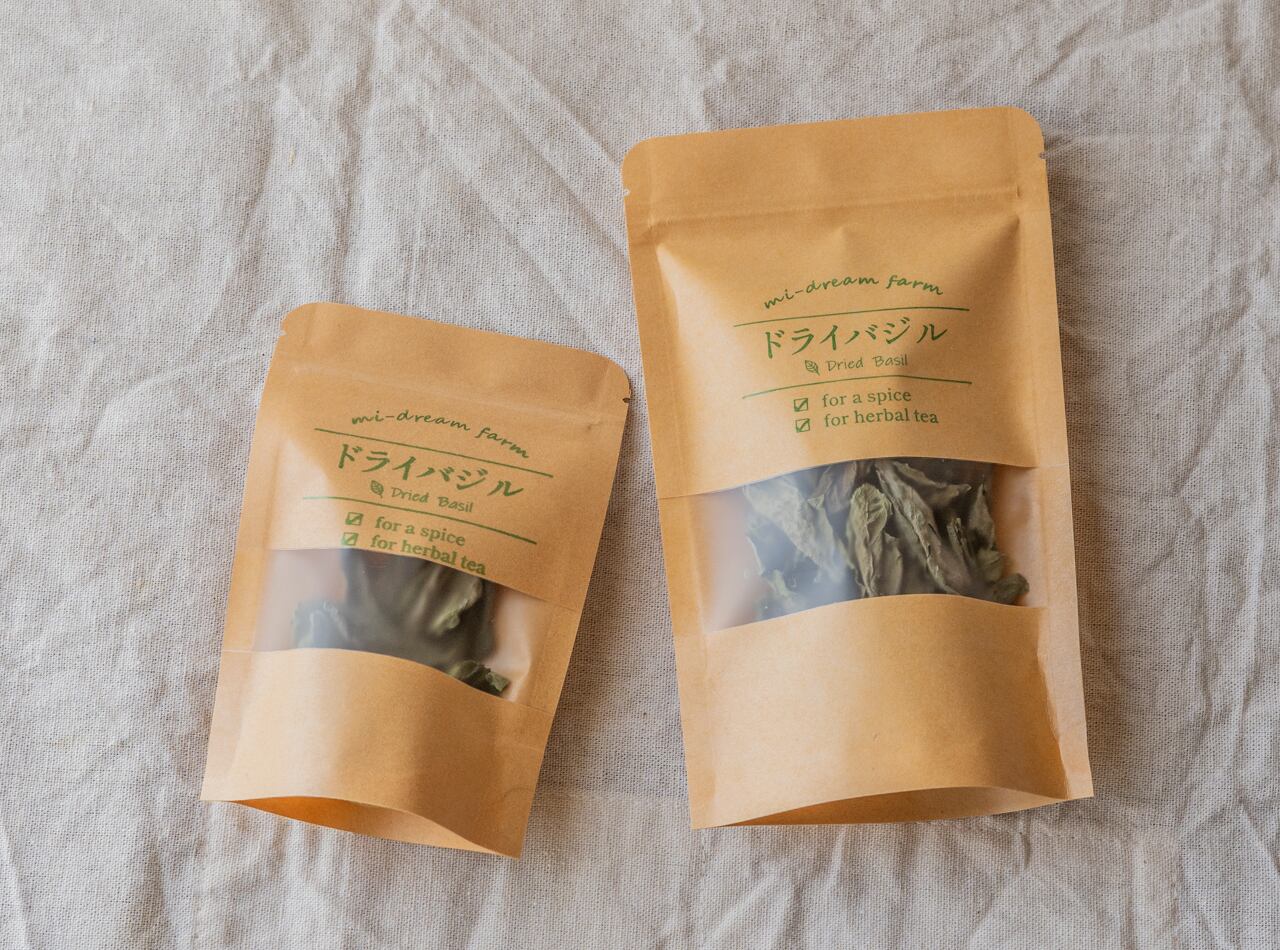 農薬を使わずに育てた緑夢ファーム産のバジルを丁寧に自然乾燥させたドライバジルです。